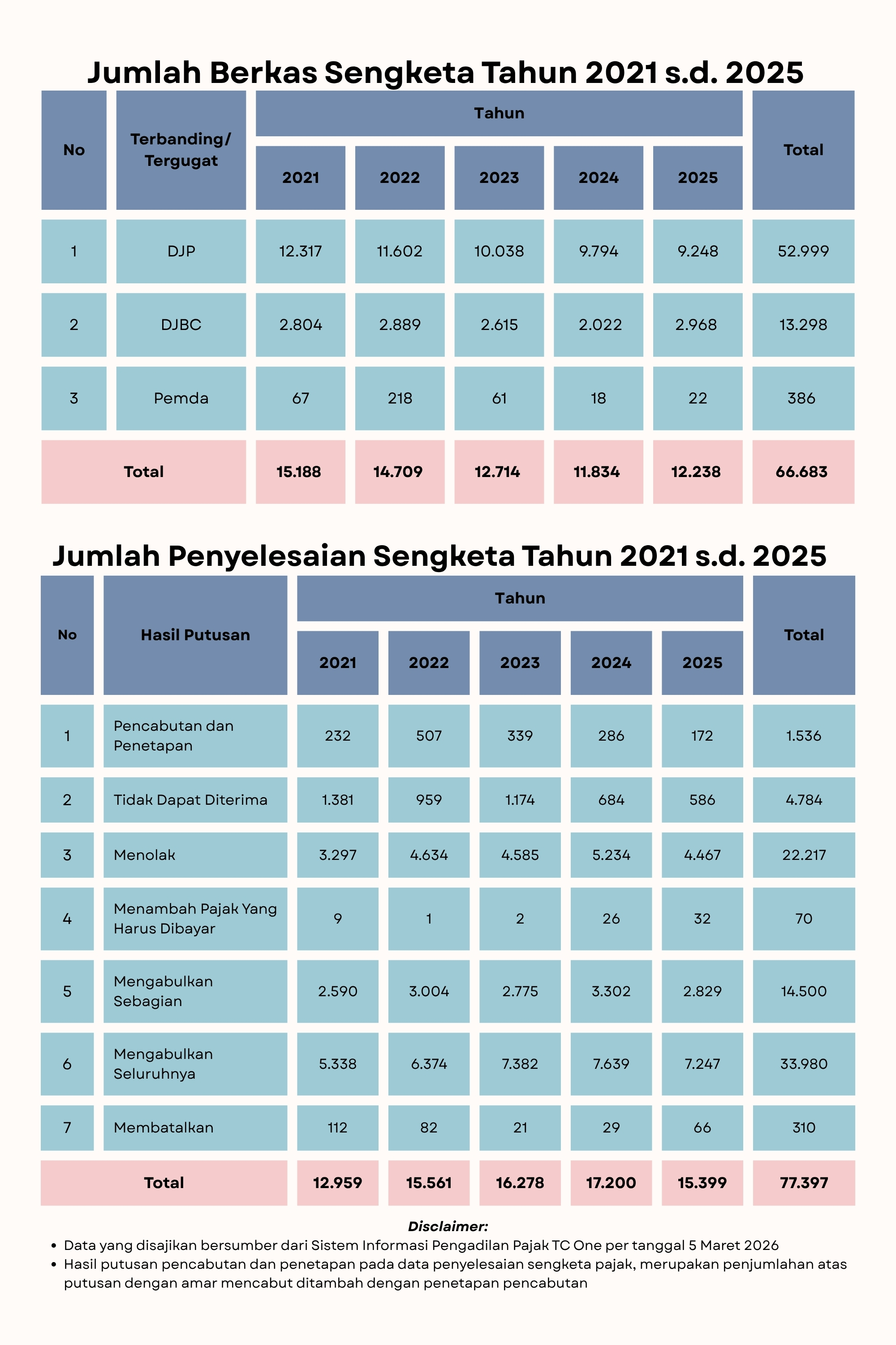 Statistik Jumlah Berkas Sengketa dan Penyelesaian Sengketa Tahun 2021 - 2025